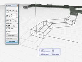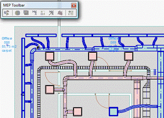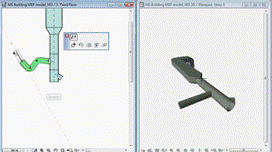 MEP Modeler提供了一组强大的用来修改MEP系统的各个元素几何形状的图形化编辑辅助工具。编辑MEP系统的一部分会自动更改相连的元素。新的连接件也可能被添加到系统中。